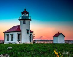 The Point Robinson Lighthouse was dedicated in 1885 and is still an operational navigational aid located on the east end of Maury Island in Puget Sound. When the weather is clear one can catch a beautiful view of Mount Rainier to the east..