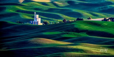"June at the Whitman County Growers" Springtime in Steptoe always provides an array of beautiful wheat fields for as far as the eye can see. Steptoe Butte provides a platform too view this beauty. Here we see the Whitman County Growers elevator in Steptoe surrounded by the wheat that it will store later in the summer.