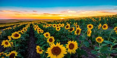 "Palouse Sunflowers" The Palouse Country is home to many crops such as wheat, canola, barley and many others. In my opinion though, the most beautiful are the sunflowers. I think I was able to capture the essence of that beauty in this image.